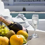 Flaskos Luxury Suitesホテルの一部の客室にはパティオ、バルコニー とライティングデスクが備わっています。 一部の客室にはスパバスタブ とドレッシングガウンが備わります。 一部の部屋からは、海の景色を眺めることができます。