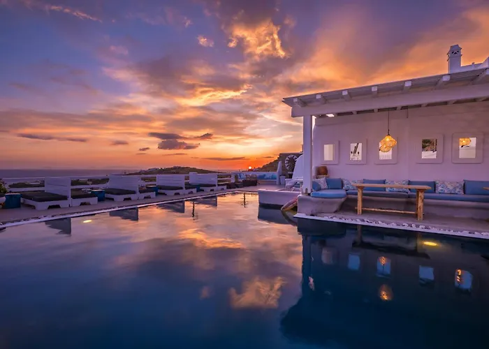 4-gwiazdkowy hotel Flaskos Luxury Suites Agios Stefanos Avliotes znajduje się prawie 5 min spacerem od Agios Stefanos i składa się z 16 pokojów wyposażonych w nowoczesne udogodnienia. Monastyr Panagia Tourliani jest w prawie 7 km, a Latarnia morska na Mykonos jest 3 km od od hotelu.